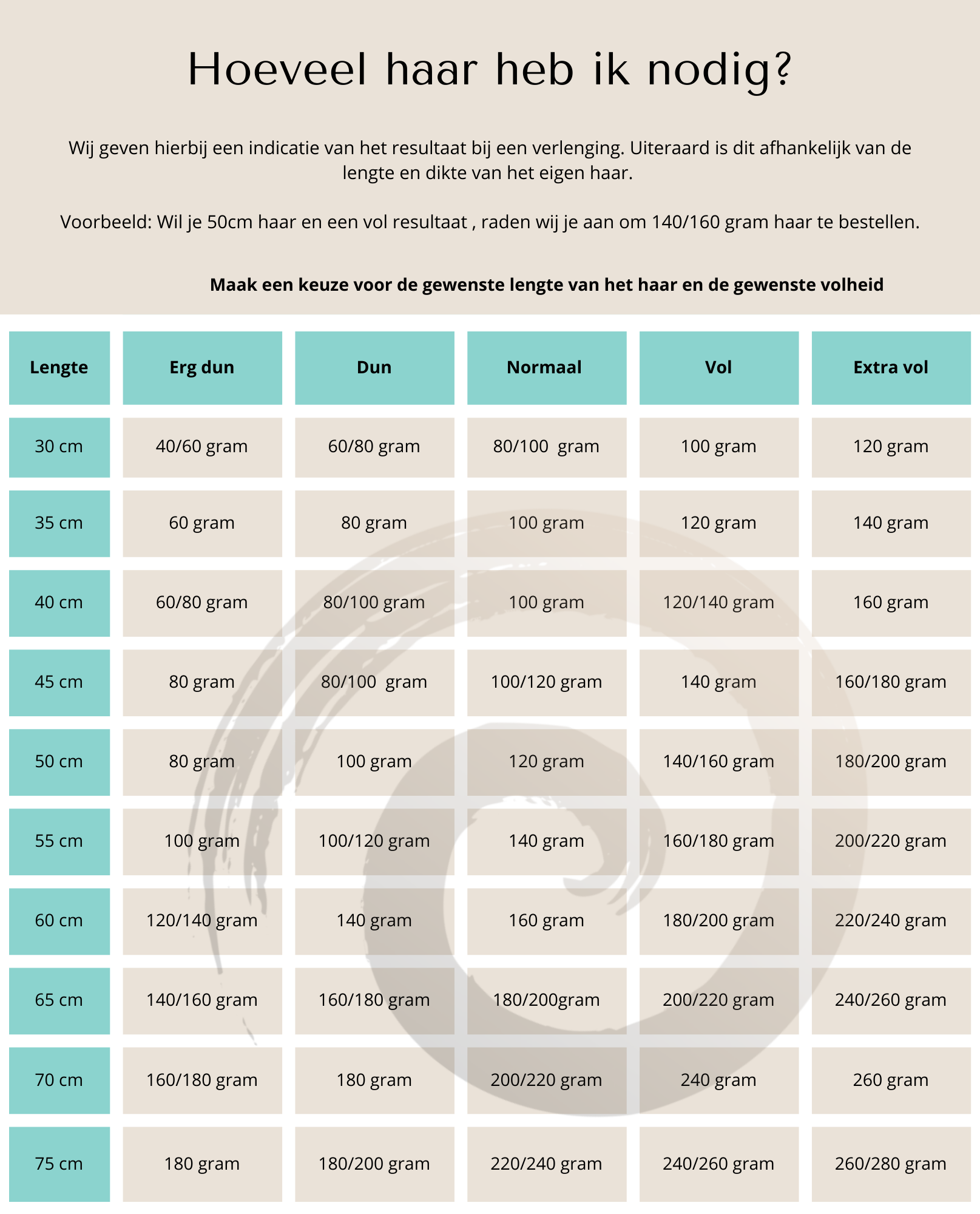 We hebben diverse lengtes op voorraad, namelijk 30, 35, 40, 45, 50, 55 en 60 cm. Bovendien kunnen we ook langer haar of haar met textuur op bestelling leveren. Kies voor onze ultra dunne Genius Wefts en geniet van prachtig, natuurlijk ogend haar dat lang mee gaat!